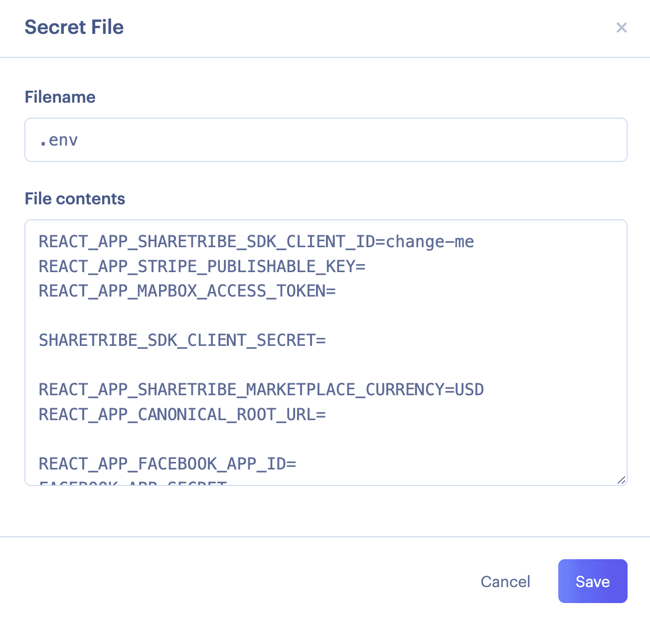 SHARETRIBE_SDK_CLIENT_SECRETSharetribe client secret. Check this from Console.
